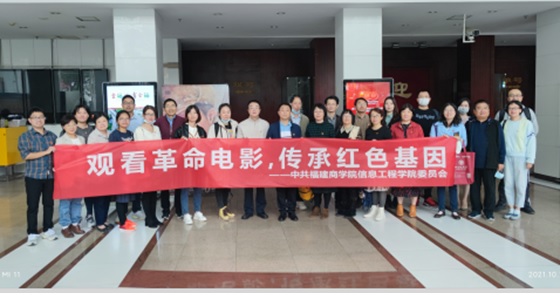 为持续深入开展党史学习教育,落实习近平总书记关于学好“四史”的指示精神,弘扬伟大抗美援朝精神,缅怀革命先烈,增强爱党爱国爱社会主义精神情怀,锤炼党性修养,2021年10月26日下午,我院党委组织开展了“观看革命电影,传承红色基因”主题党日活动,组织学院全体教师党员共赴福州大戏院观看抗美援朝题材电影《长津湖》。
