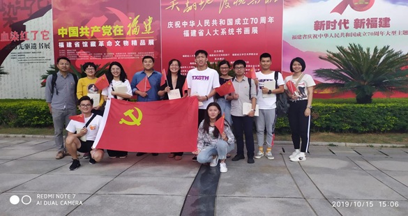 为庆祝中华人民共和国成立70周年,2019年10月15日yl7703永利集团学生第一、第二党支部在福建博物馆开展参观“新时代新福建——福建省庆祝中华人民共和国成立70周年大型主题展”党日活动,主题展呈现出一幅新时代新福建建设新征程中持续奋斗、开拓前行的壮美画卷,党员们为中华人民共和国成立70年来福建经济社会发展的巨大成就所震撼,纷纷流连忘返。