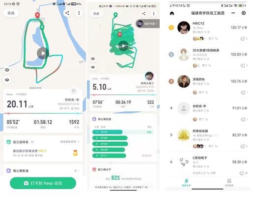 此次活动,充分挖掘互联网优势,采取线下跑步线上记录、个人自由跑和公里数累计相结合的比赛形式进行。活动共吸引我院近百名学生参赛,同学们一个个相互鼓励,相互督促,你追我赶,最终来自于20数据科学与大数据技术1班的林浩同学以累计251.0km获得了此次比赛的第一名。