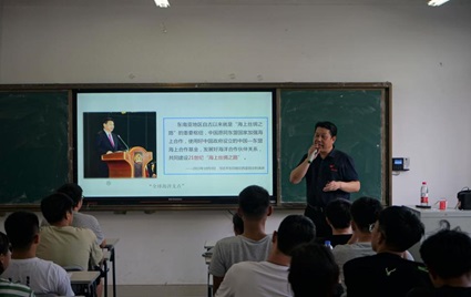 2019年7月1日黄斌校长在诚信楼211为我院学生讲授了《一带一路:从全面布局到走深走实》的思政理论课。