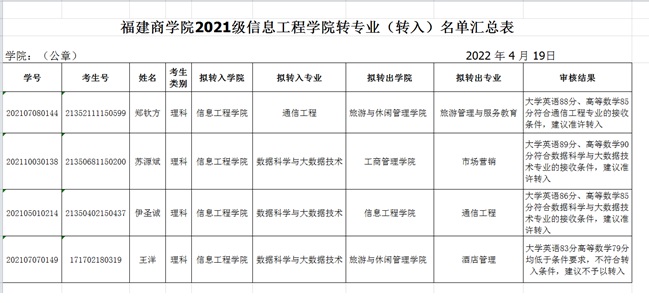 根据《关于做好2021级本科生转专业工作的通知(商院学籍〔2022〕7号)》,经个人申请、转出学院同意,学生的基础考核成绩经yl7703永利集团转专业考核小组成员审核、yl7703永利集团转专业工作领导小组审议,现将名单予以公示。